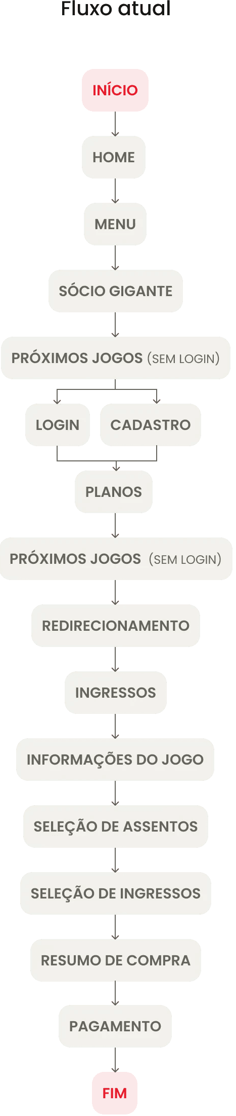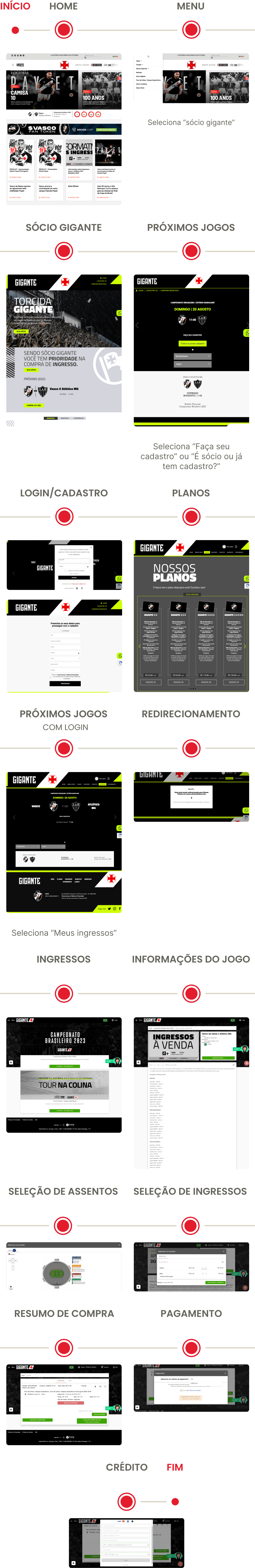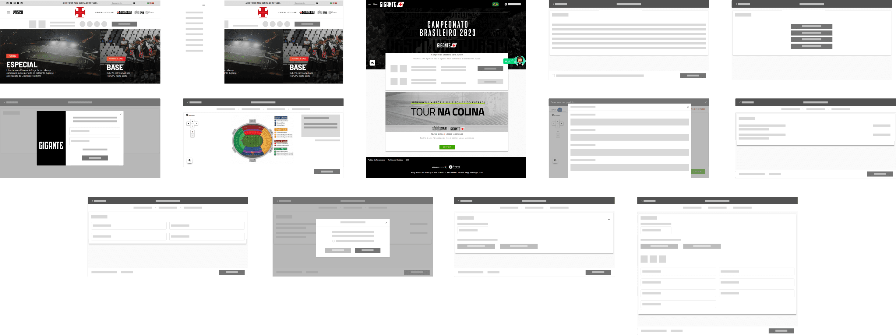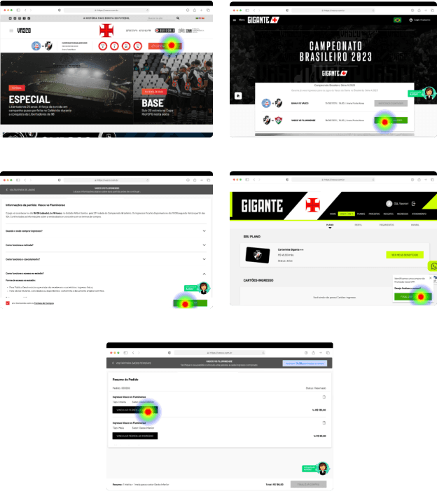 Lembrando que: As páginas mobile não foram analisadas neste projeto, pois os sites de compra de ingressos de futebol geralmente não dão tanta prioridade para mobile. E, como essa decisão foi tomada porque a prioridade era melhorar rapidamente o fluxo com a estrutura já existente, as telas mobile foram registradas no backlog.