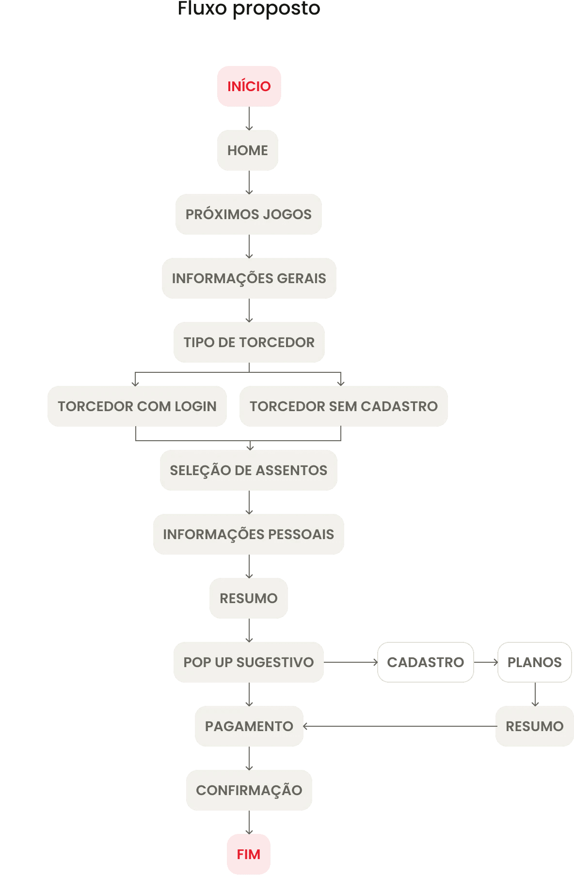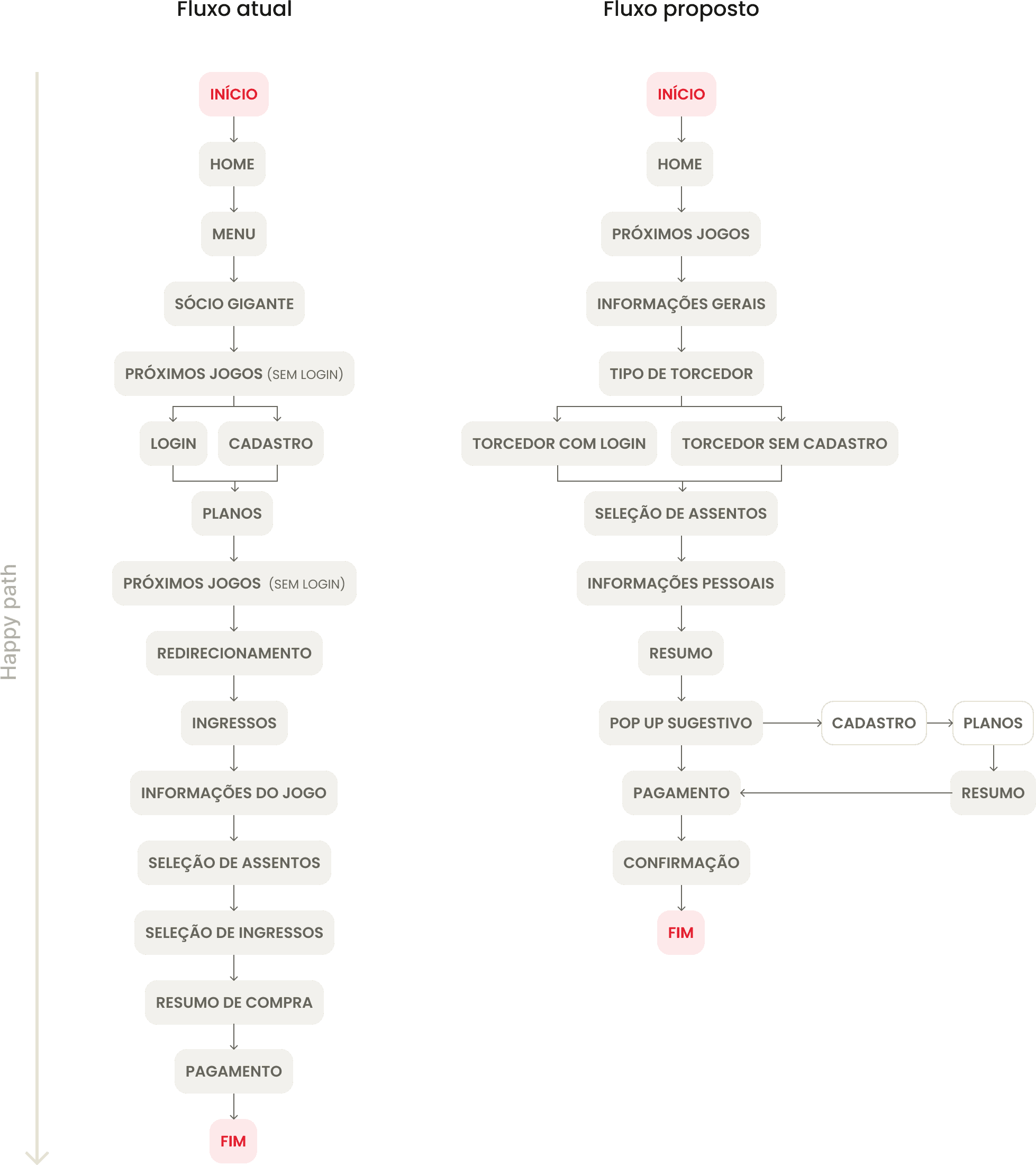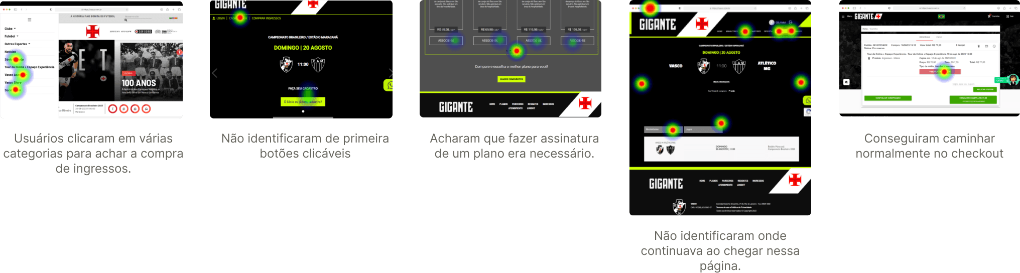Lembrando que: As páginas mobile não foram analisadas neste projeto, pois os sites de compra de ingressos de futebol geralmente não dão tanta prioridade para mobile. E, como essa decisão foi tomada porque a prioridade era melhorar rapidamente o fluxo com a estrutura já existente, as telas mobile foram registradas no backlog.