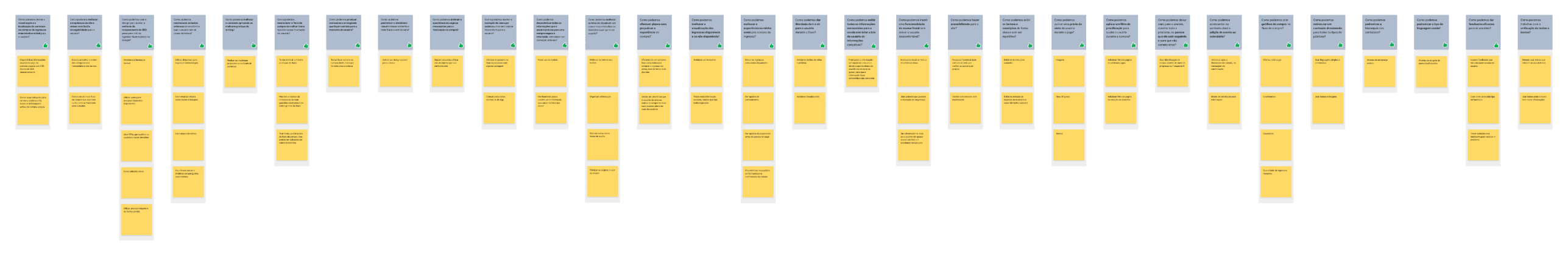 Fiz alguns esboços para explorar ideias e oportunidades antes de confirmar as mudanças. Parti do site atual e construí em cima disso, não me preocupando com detalhes de design ou questões adicionais. Me concentrei em melhorar o que já tínhamos de forma rápida para evitar grandes perdas de vendas devido aos problemas identificados anteriormente.